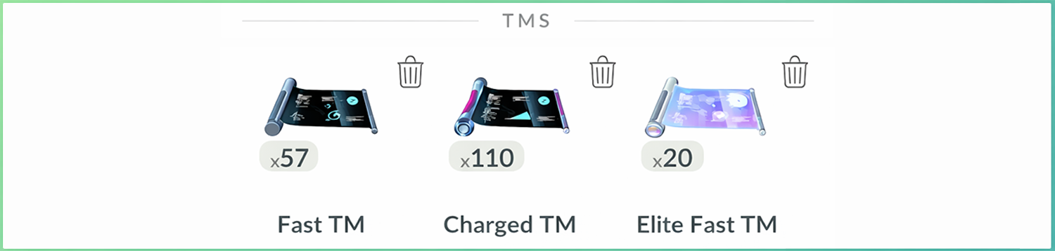 - Charged TM – Needed more often because Pokémon have multiple charged moves.