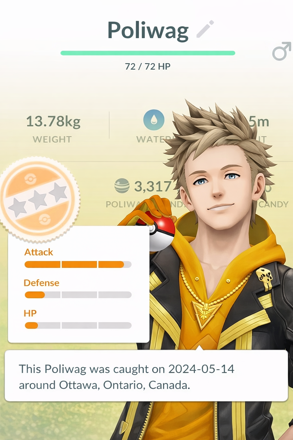 Each Pokémon has three IV stats: