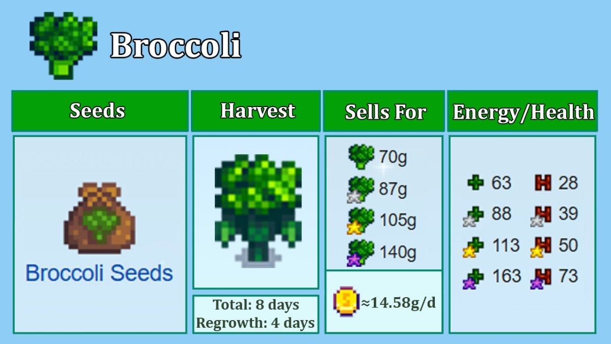 Play tip: Broccoli is perfect for players who want a balance between profit and a controlled harvesting schedule—less intensive than Cranberries but more rewarding than single-harvest filler crops.